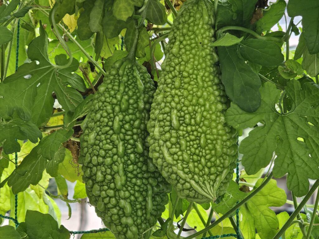 ↓八百屋さんの花壇にはゴーヤが元気に実っています。