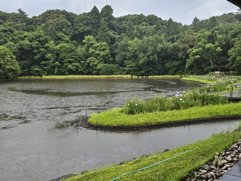 ↓外宮入口近くの資料館の奥の庭園です。この時期はあやめ?が咲いていました。